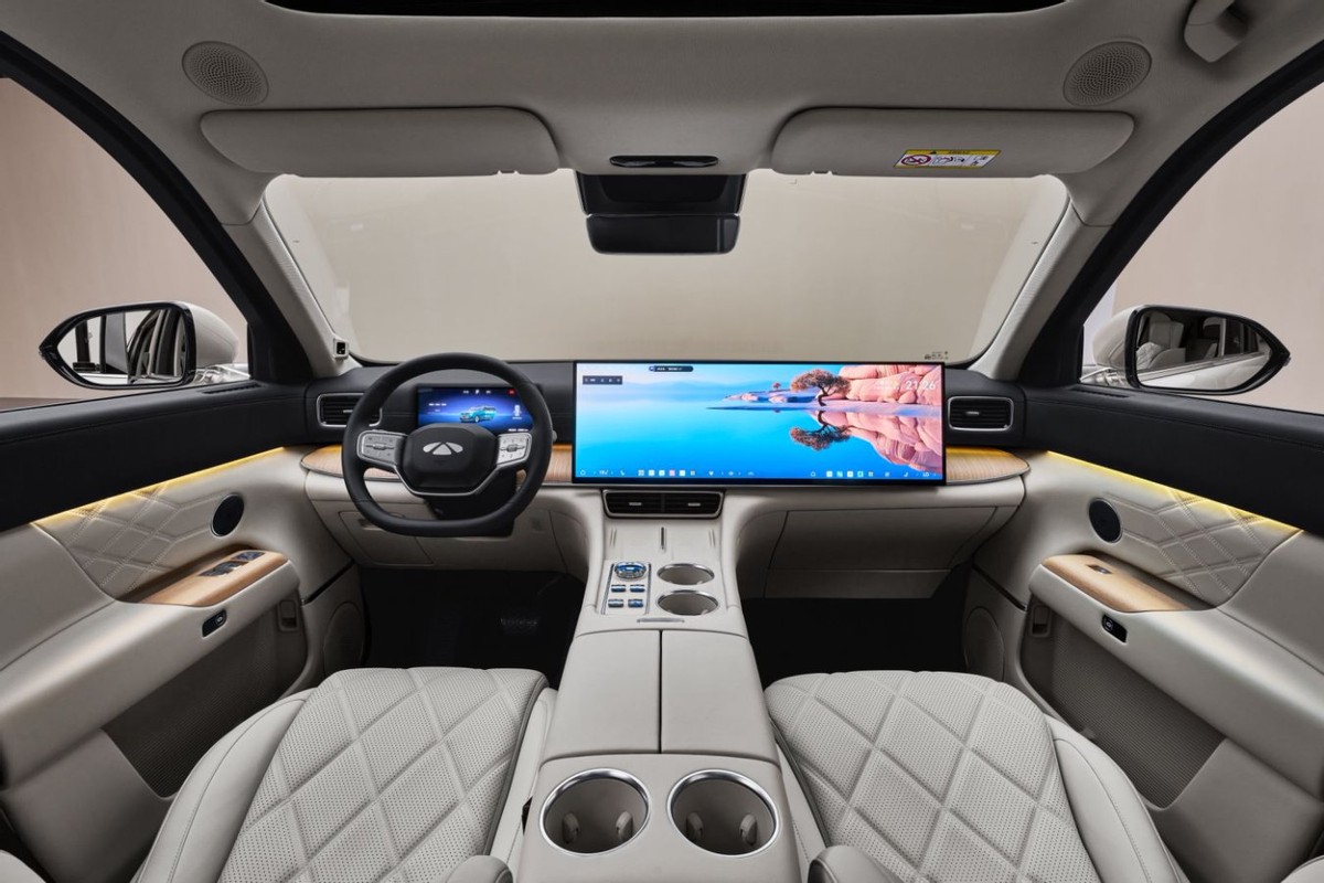在智能交互层面,风云T11在前排6K/30英寸大屏内置了以高通8255芯片为基础的智能车机,AI大模型接入DeepSeek,且前后六个座位均可独立识别并唤醒语音系统,并全系支持CarPlay、HiCar、CarLink等互联协议。