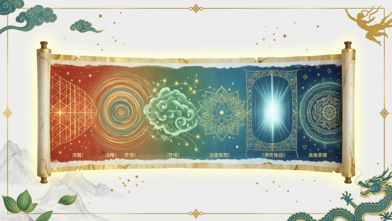 关键词:清醒状态、梦境、昏迷、濒死体验、致幻状态、高维意识