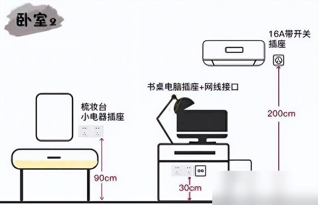 注意:床头插座别装太低,不然插充电线要弯腰;梳妆台插座装在镜子侧面,别在正下方,避免被化妆品挡住。