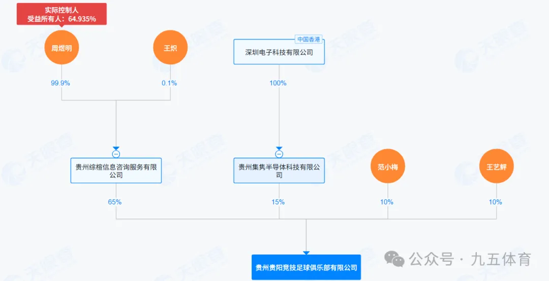 此后,即2024年11月29日,贵州集隽半导体科技有限公司(以下简称“集隽半导体”)成为贵州筑城竞技足球俱乐部的第一大股东,持股比例为80%;范小梅、王艺鲆的持股比例分别降至10%、10%。