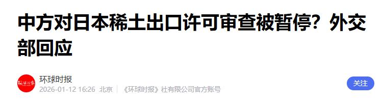 中方对日本稀土出口许可审查被暂停?外交部回应——环球时报