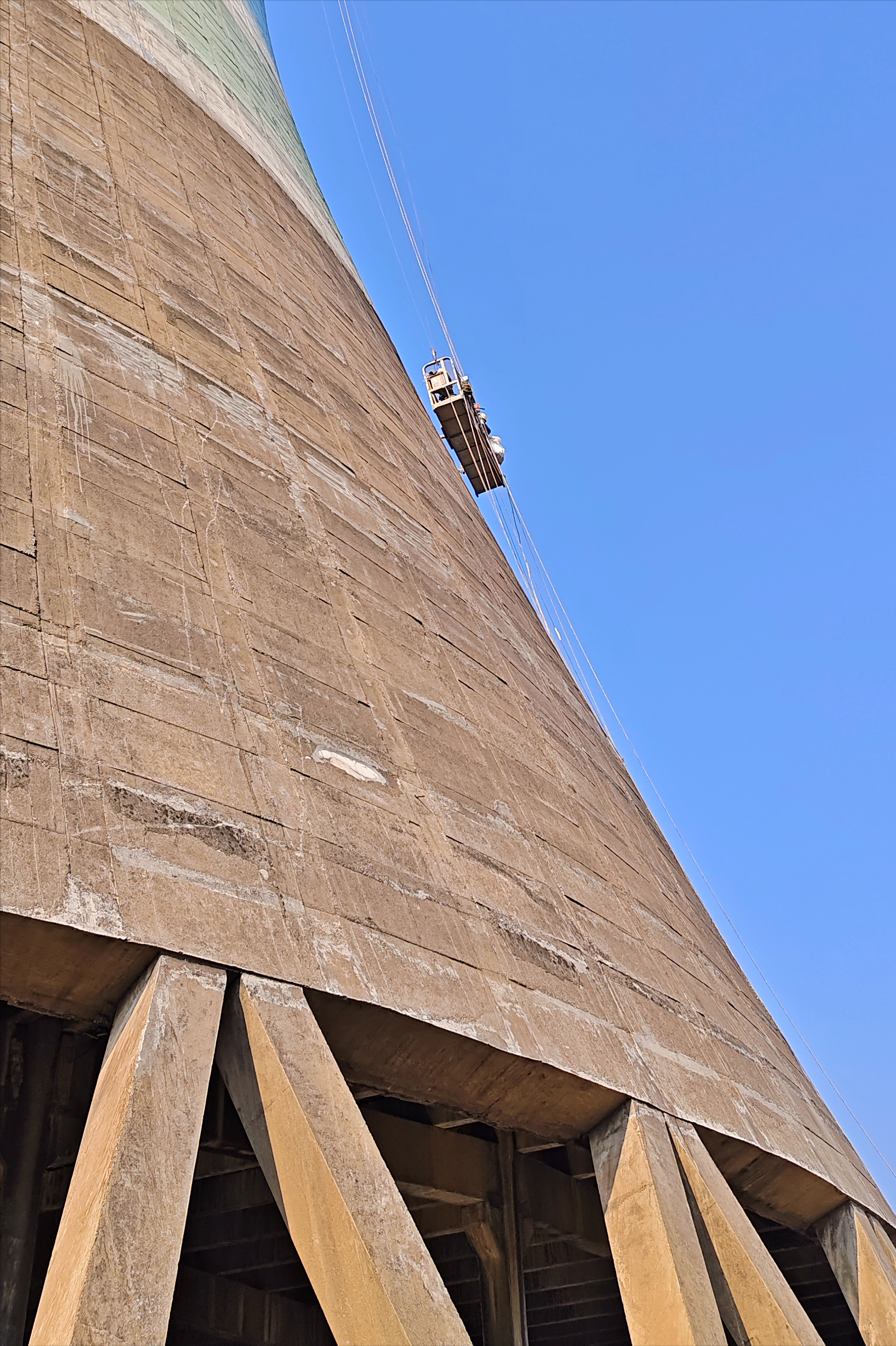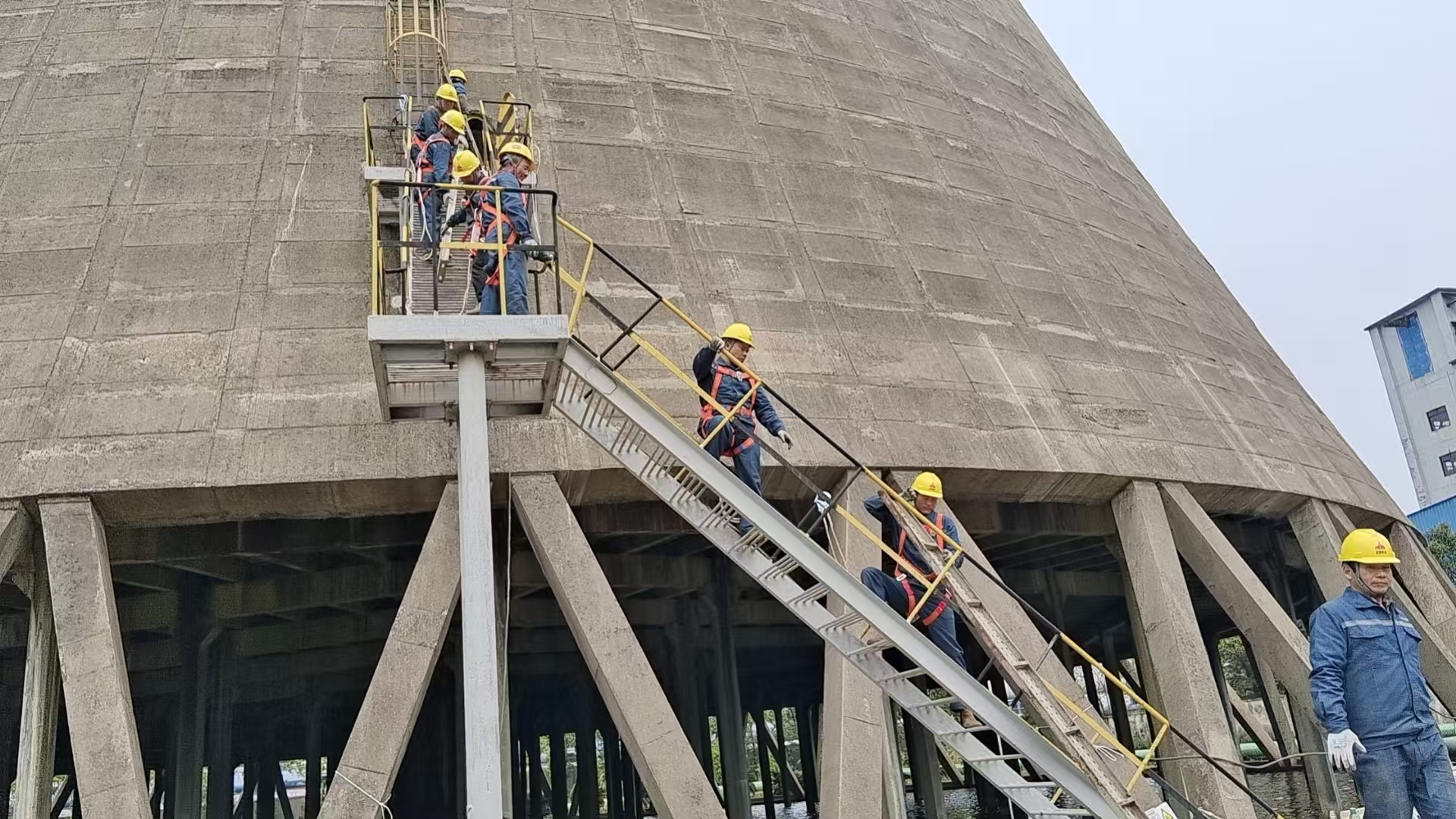 1.安全措施:冷却塔停机、排水、清淤、通风 搭设临时支撑、脚手架,设置安全通道 地面警戒,高空 / 临边作业系安全带