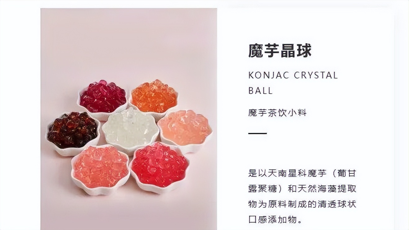 魔芋生产企业也敏锐地嗅到了商机,研发出了魔芋晶球、魔芋冻等小料,同时还为茶饮品牌提供魔芋零食的代工,魔芋逐渐渗透进了新茶饮领域。