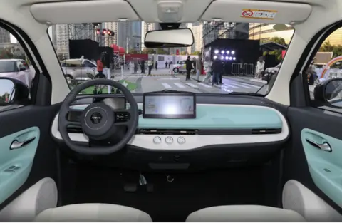 打开车门来到车内,五菱埃尚的座舱也是以精致的效果为主,虽然在用料上较为差劲,但是配色拯救了这一点,这也是微型车设计的一大亮点了,同时该车在实用性的表现上也不算差,其不仅配备了7英寸的数字仪表,而且中控屏幕的尺寸也达到了10.25英寸,这也让其车内的科技质感更加的出众。同时,数字仪表上显示的功能还是蛮多的,可以让我们对自己的爱车了如指掌,数据读取的时候也比较方便,并且中控屏幕还支持触控操作,在响应速度上也较为灵敏,再加上蓝牙连接和手机互联以及倒车影像等基础功能,在实用性的表现上,五菱埃尚显然不算差。