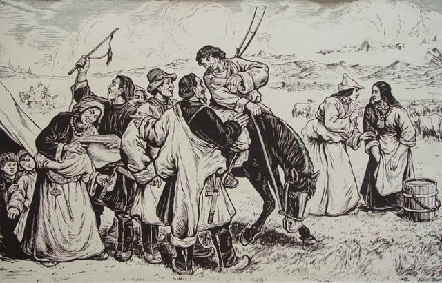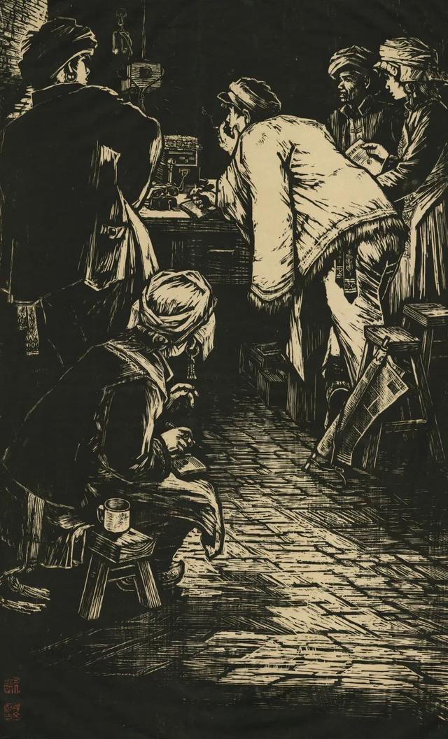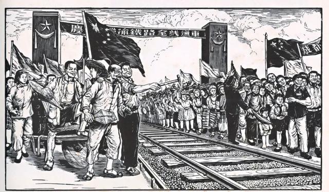 《四十年的愿望实现了》李少言 黑白木刻 26.5x64cm 1953年