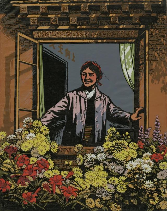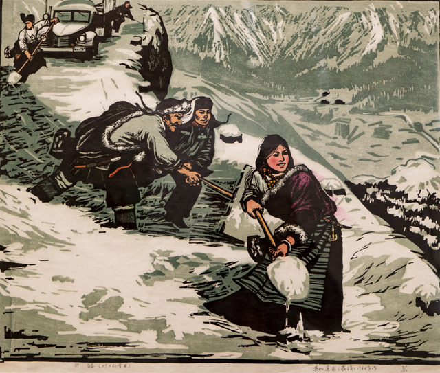 《开路》其加达瓦 套色木刻 59.5×49cm 1964年