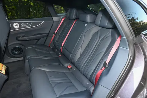 双电机版本680kW的峰值功率真不是盖的。第一次试地板电时,我下意识地抓紧了方向盘——后背瞬间被座椅紧紧按住,那种强烈的推背感让脑子瞬间空白,仪表盘的指针"嗖"地就窜到了100km/h,用时刚好2.83秒。旁边车道的燃油车瞬间变成小黑点,消失在后视镜里。这种性能绝不是"中看不中用"。市区超车时,轻轻踩下电门,动力随叫随到,干净利落没有丝毫拖沓。高速上时速120km/h再加速,依然有源源不断的动力输出,超车变道信心十足。令人惊喜的是它的极速能到280km/h,虽然日常用不上,但这种性能储备带来的安全感无可替代。