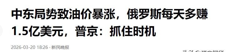 作为盯着国际油气多年的老玩家,看到俄罗斯这剧情反转,我真是一惊:前脚还在愁“家底”耗尽,后脚靠中东乱局直接“回血”?这四年战争把俄国库存烧得滚烫,福利基金蒸发三分之二,全民加税搞得民怨沸腾,大家本都以为它要崩盘了。结果霍尔木兹海峡一出事,油价飙到上百刀,俄油瞬间成香饽饽,每天躺着多赚几亿美元!印巴泰各国排队抢货,从嫌弃到真香只需一周,这翻身仗打得太戏剧性。