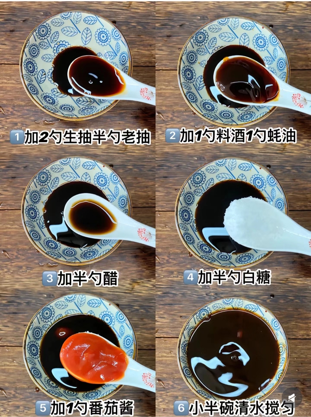 接下来就是调配这道菜的灵魂酱汁啦!拿出一个小碗,依次加入2勺生抽,生抽能提鲜,让大虾的味道更浓郁;半勺老抽,它可是上色的高手,能让大虾拥有诱人的红亮色泽;1勺蚝油,蚝油的鲜味能为这道菜锦上添花;1勺料酒,去腥的同时还能增添独特的风味;半勺醋,既能中和油腻感,又能调出一丝微妙的酸味,丰富口感;半勺白糖,提提鲜,让味道更有层次;1勺番茄酱,增加色泽和酸甜的味道,让酱汁的味道更加醇厚。最后,加入小半碗清水,用筷子或者勺子搅拌均匀。这秘制酱汁就大功告成啦,是不是很简单?