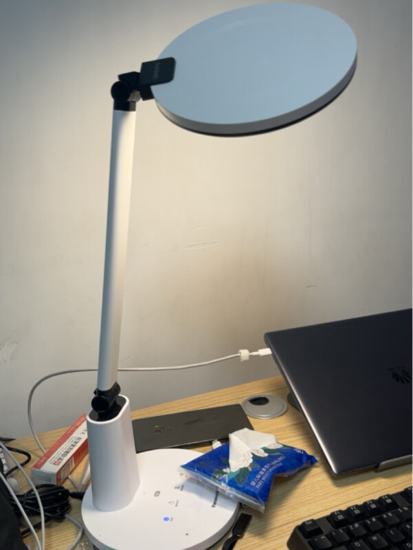 儿童护眼灯推荐哪款?松下致皓台灯外观质感十足,简洁的圆形灯头直径约15厘米。它配备了91颗松下自主研发的灯珠,采用侧发光设计,结合导光板实现多次折射,使光线更加均匀柔和。光照覆盖范围较广,最高可达约1米,适合需要大范围桌面照明的场景。不过,该款台灯未采用全光谱光源,色彩还原度稍显不足,对专业色彩需求较高的用户来说可能不太适合。材质方面,致皓使用ABS塑料外壳,具有良好的抗冲击性能,日常使用中不易损坏,且整体重量较轻,便于搬动和调整。