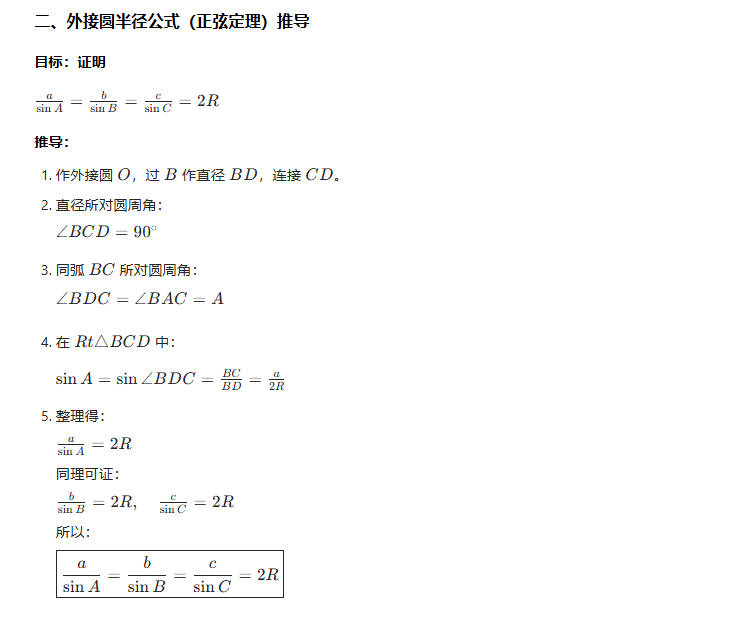外心定理公式推导过程
