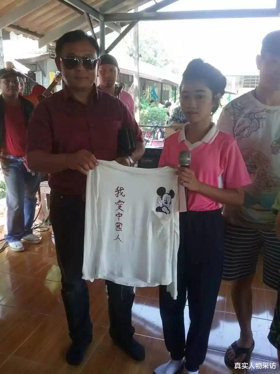 最让我感动的是,一个孩子拿出了一件印着“我爱中国人”的T恤送给了我们。