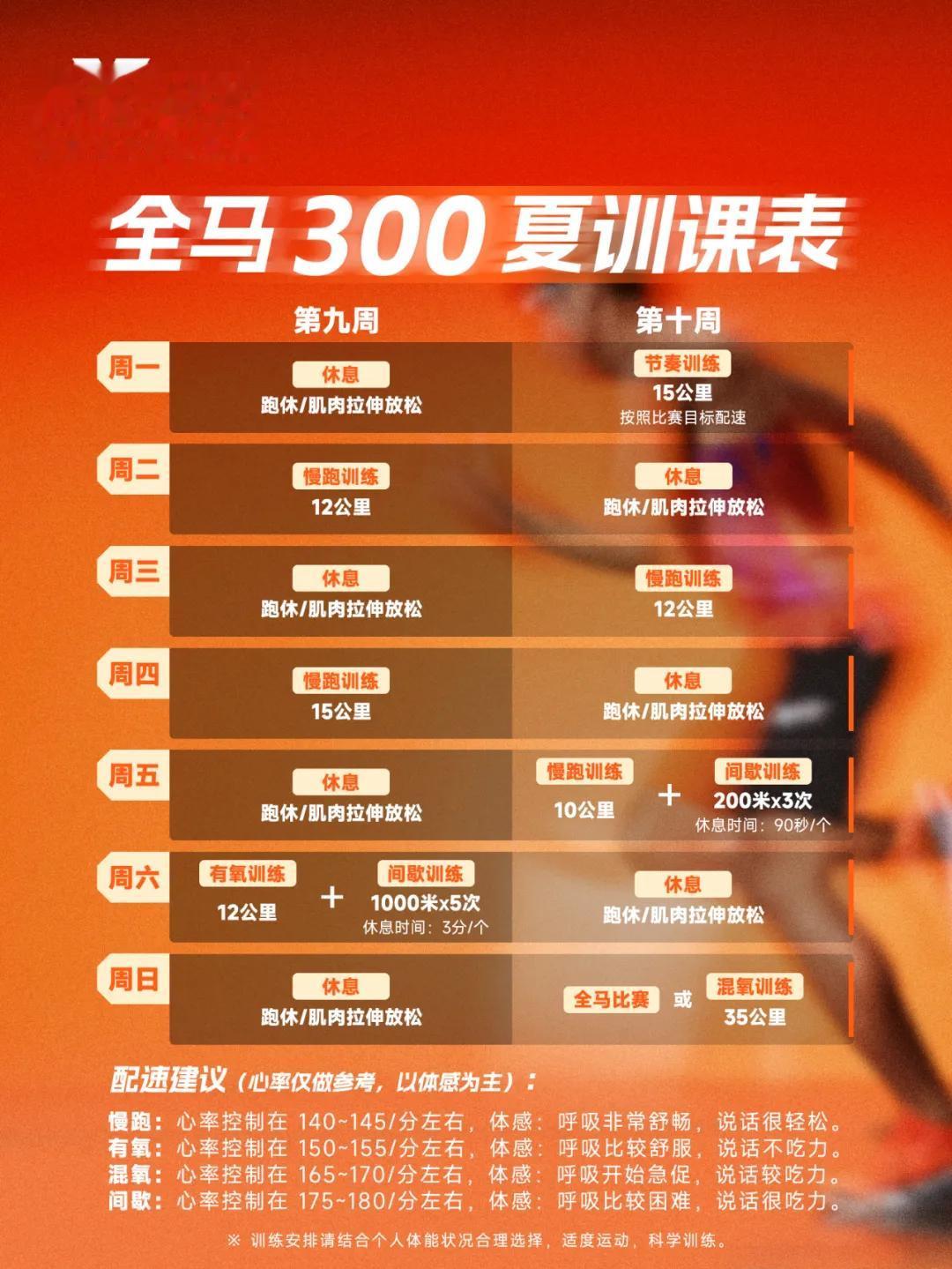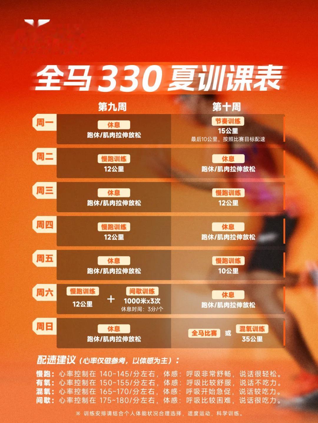 特步跑步始于六月底的10周训练课表,如今进入后期,也是赛前调整期,到了检验训练成果的时候。因此,第9周、第10周的训练负荷相对较低,主要是围绕着比赛或测验,展开赛前调控。