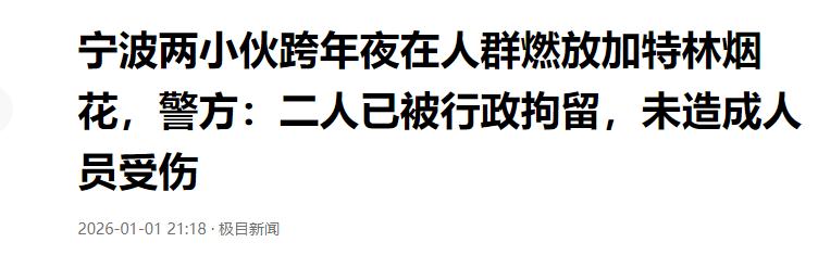 1月1日,官方通报了事件结果:两名男子因在禁放区域燃放烟花爆竹,已被公安机关依法行政拘留,由于处置及时,事件未造成人员受伤,现场秩序很快恢复平稳。