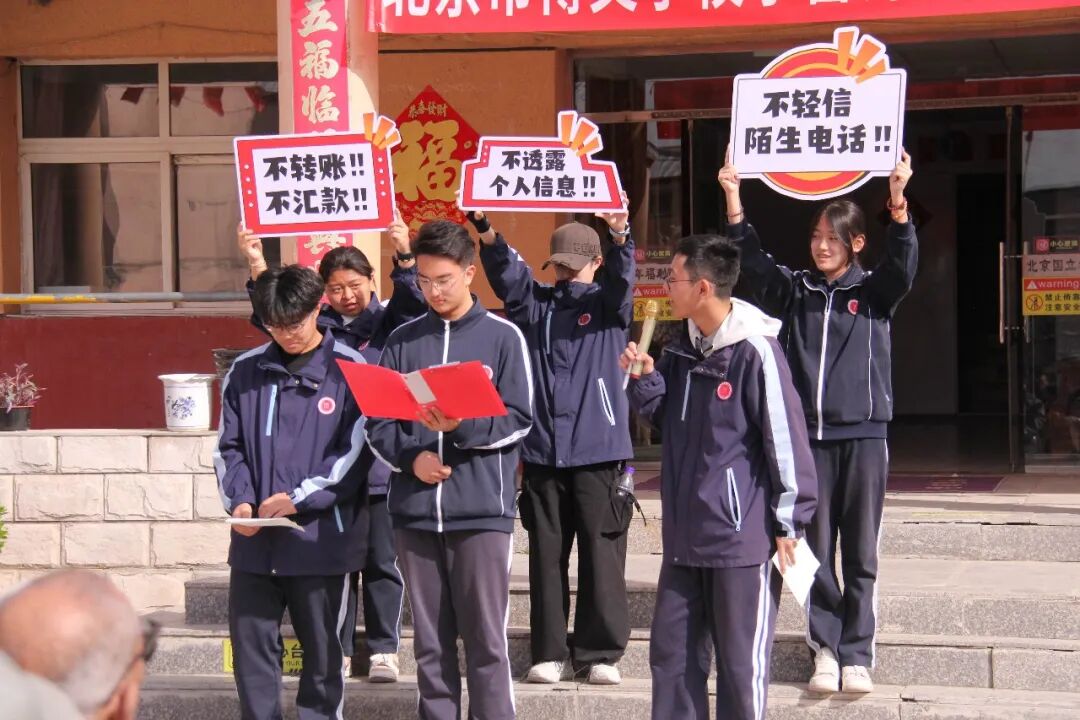 高中部化身防诈宣传员,围绕“不轻信、不透露、不转账”三不原则,用通俗语言讲解电信诈骗、冒充亲属等常见骗局,现场模拟诈骗话术,传授实用应对口诀,手把手帮老人筑牢安全防线,守护好“钱袋子”。