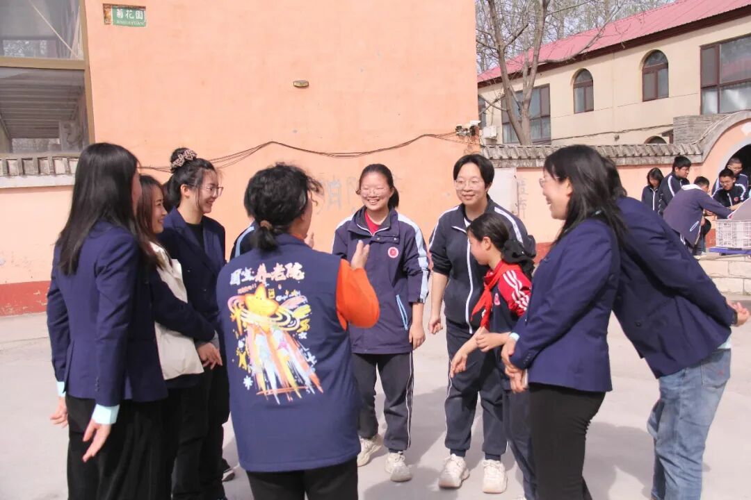 初中部带领老人做坐式拍拍操,无需起身即可活动头颈、肩臂,轻柔动作舒缓身心,尽显贴心关怀。