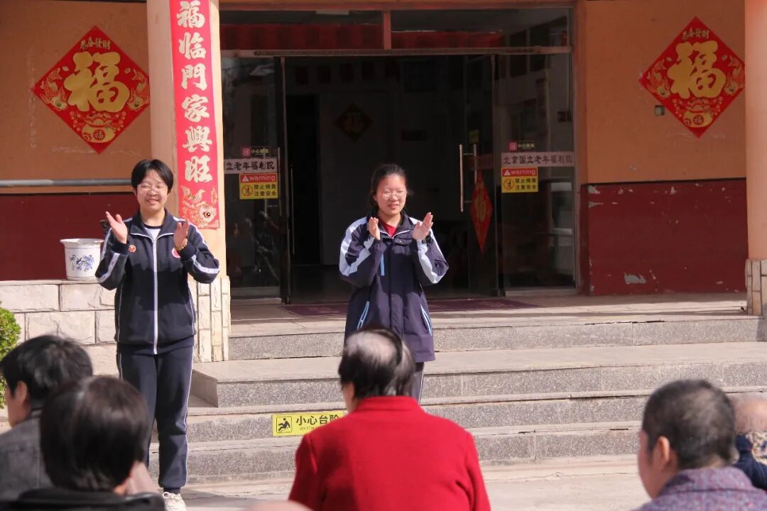 小学部身着整齐校服,唱响《学习雷锋好榜样》,稚嫩歌声铿锵有力,传递满满正能量,赢得老人们阵阵掌声。