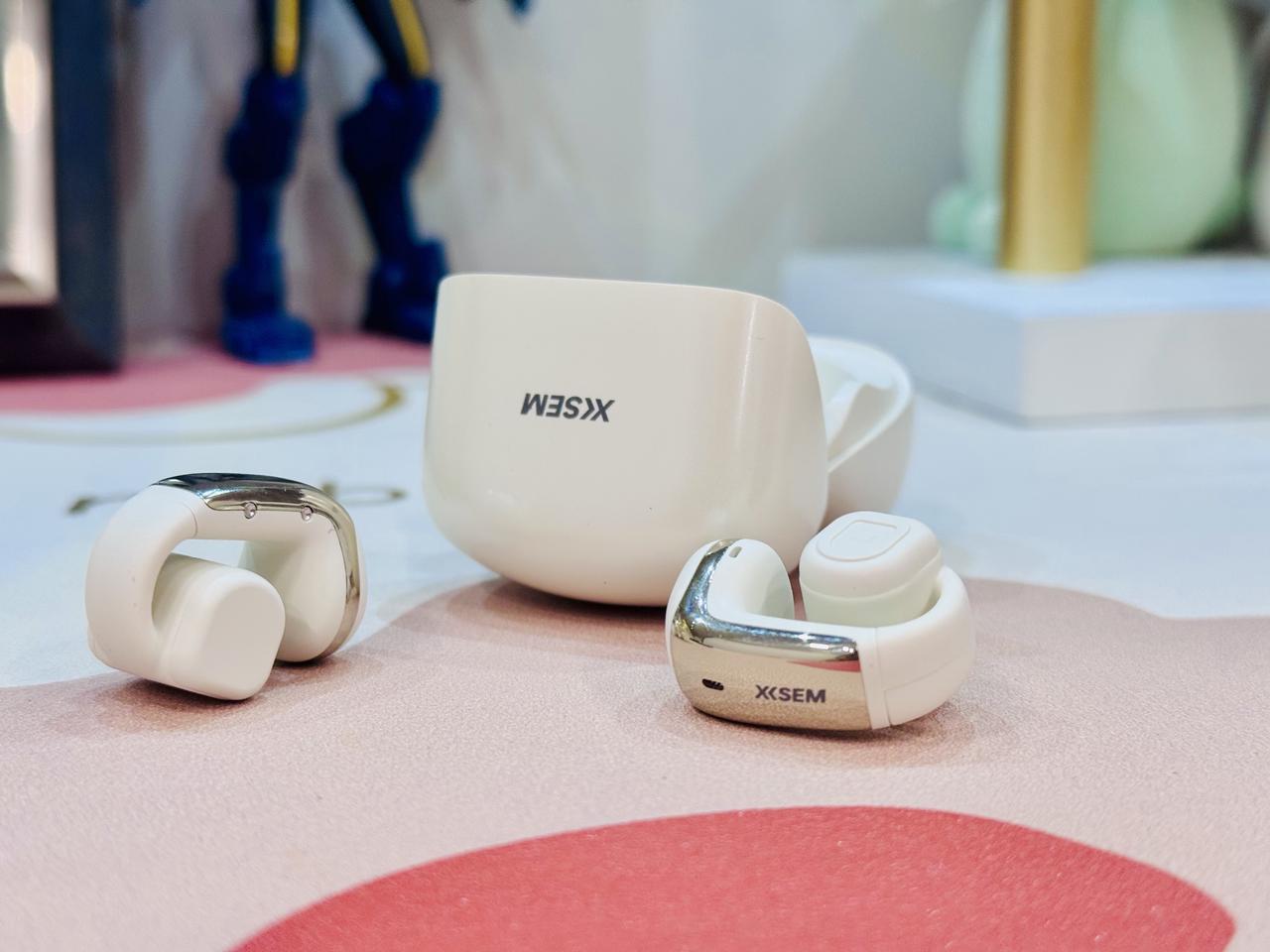 二、使用体验其实很多人估计跟我一样,刚看到这个耳机的设计形状,会疑惑为啥还有个大块头一样的“小疙瘩”,看上去也不美观。但是当我佩戴后,我就悟了,这完全算是一件穿搭装饰品,就跟华为FreeClip耳饰属性一样,亮面金色是在外面展示出来的,远看就像是一个耳饰。
