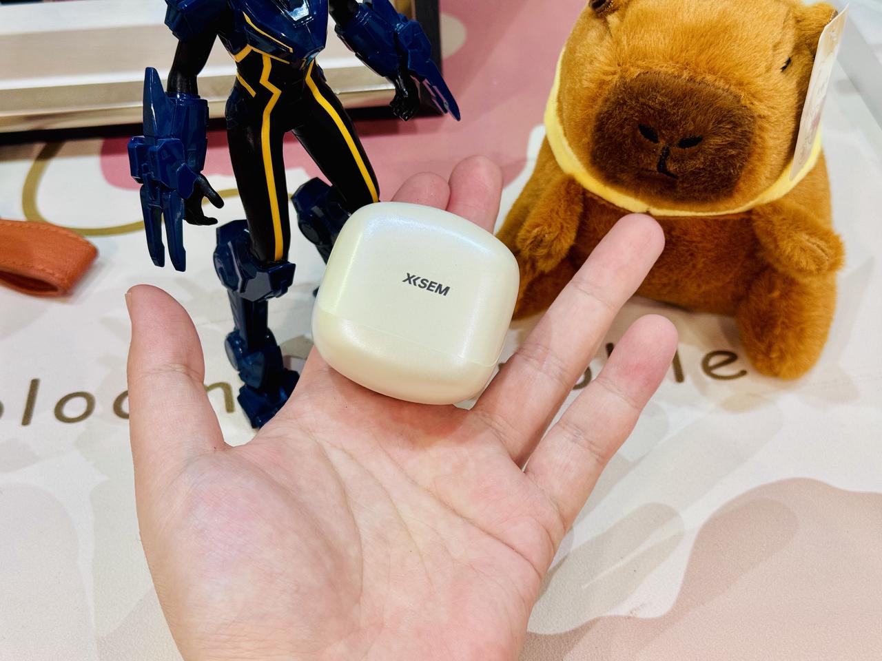 与耳朵接触的地方采用亲肤硅胶材质,软软的很Q弹。整个耳机仓大小,我也给各位比划了,两截手指那么长,两根手指那么宽。这小玩意儿总不会有女孩子再说包小放不下了吧?一个小薄片,放兜里也完全没啥负担。