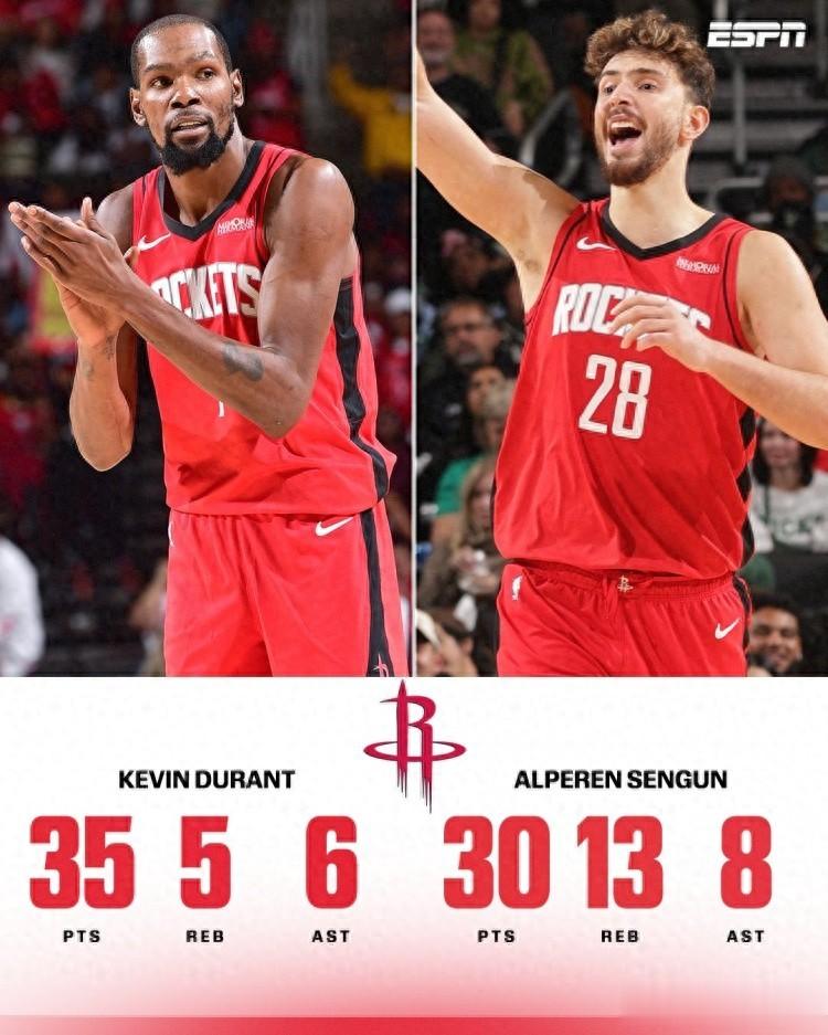 比赛一上来,没有了班凯罗的魔术反而打的顺风顺水,超高的命中率,让他们最高领先休斯顿16分,后期凭借杜兰特和谢泼德的发挥,火箭把比分追近,但是魔术一直保持着领先优势,一直到常规时间第四节快结束,才由死神杜兰特用毫不讲理的三分球追平分差,而土耳其“王哲林”申京也差点因为边线球失误,背上本场比赛失利的锅,幸好布莱克加罚不中,申京抓住机会绝平立功,把比赛带进加时,加时赛中的火箭,有了杜兰特,胜利就稳很多了!