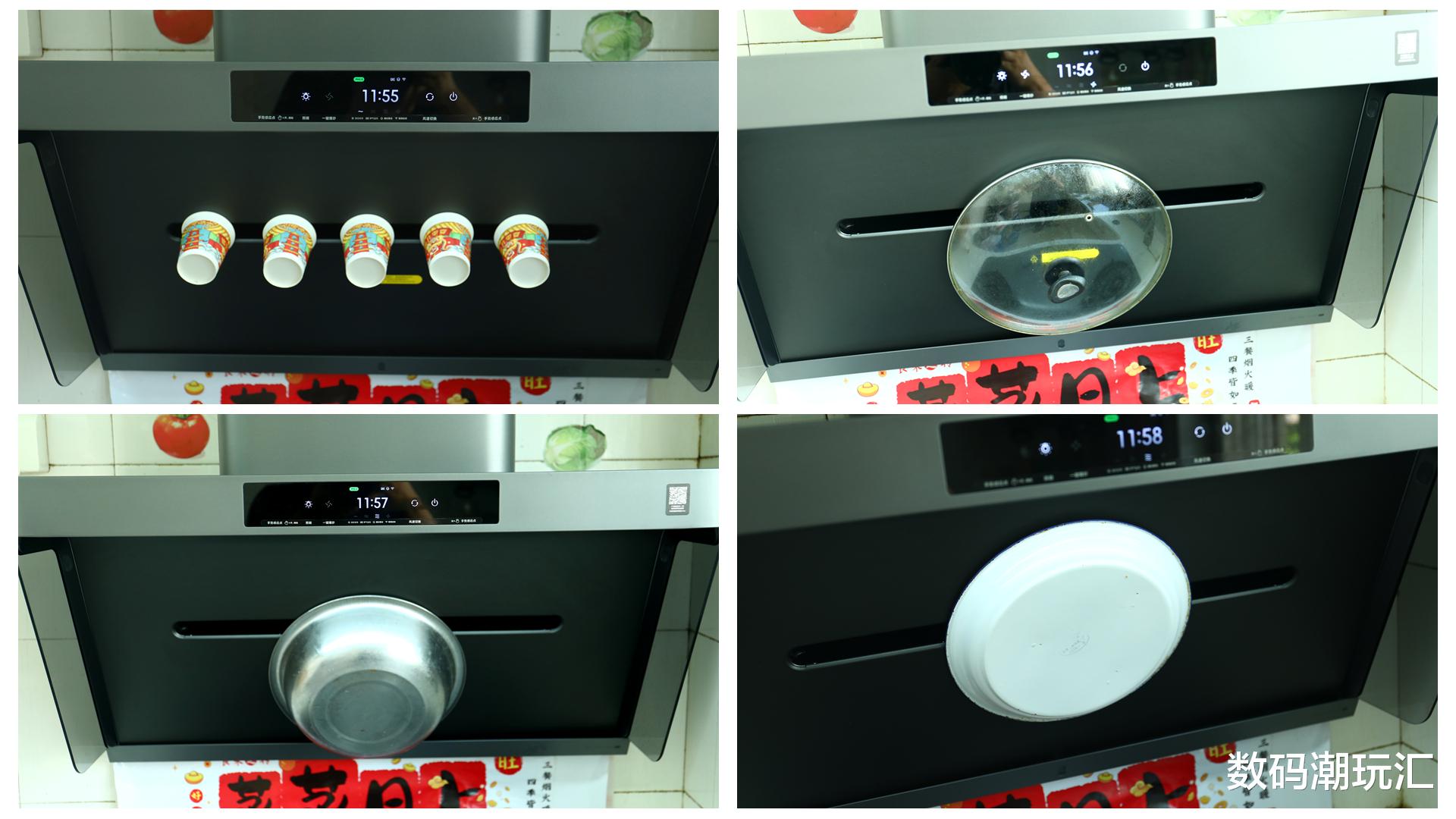 大吸力下的米家净烟机Pro几乎做到了“万物皆可吸”,小纸杯不用多说,甚至玻璃锅盖、不锈钢盆等都能稳稳的吸附在上面,可以非常直观的展示大吸力了。