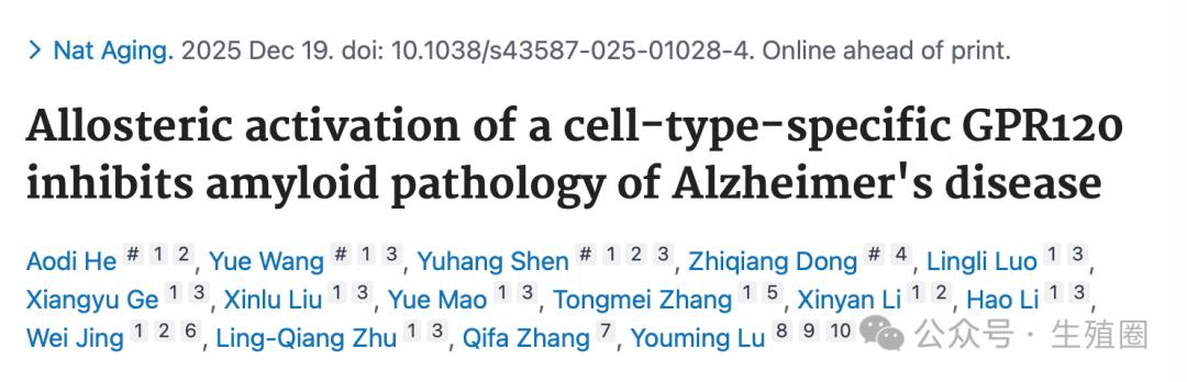 Allosteric activation of a cell-type-specific GPR120 inhibits amyloid pathology of Alzheimer's disease. Nat Aging. 2025 Dec 19. doi: 10.1038/s43587-025-01028-4. Epub ahead of print.