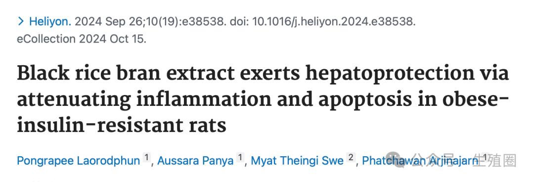 Black rice bran extract exerts hepatoprotection via attenuating inflammation and apoptosis in obese-insulin-resistant rats. Heliyon. 2024 Sep 26;10(19):e38538. doi: 10.1016/j.heliyon.2024.e38538.