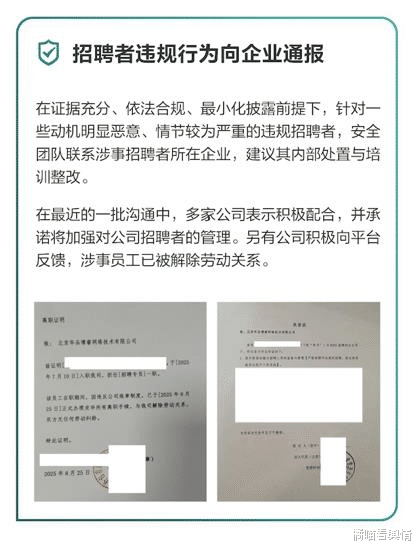 处罚机制:实施梯度处罚,首次违规限制曝光,多次违规加重封禁;对情节严重者,通报至所在企业并建议内部处置。例如,某招聘者因发送涉黄图文被平台封禁账号后,其所在公司已解除劳动关系。