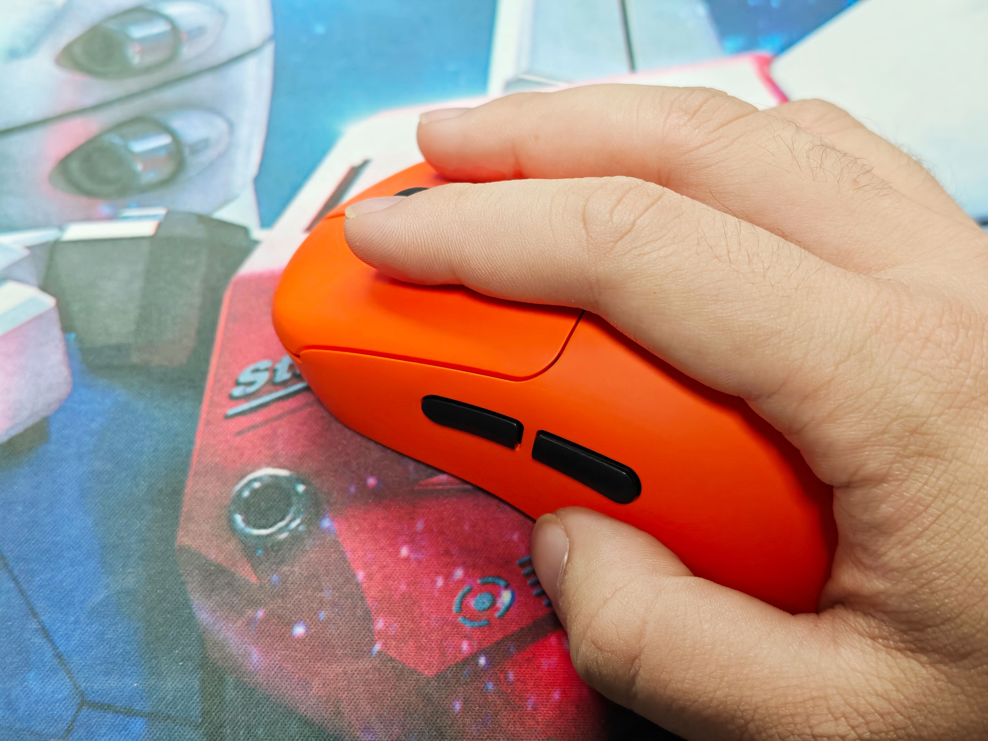 握持方面,这款鼠标的左侧双键和DPI调节键布局比较合理,平时玩游戏高频操作的时候,不容易出现误触的情况,使用起来很顺手。