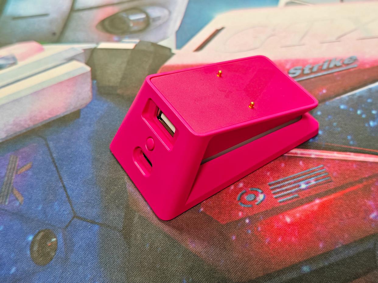 我单独购买的P5PLUS触电座充VT系列全通用,适配同系列大部分型号。它采用磁吸设计,无需精准对齐即可充电,已接入A hub全家桶生态,可进行灯光调节。还集成USB扩展口,非常便捷~