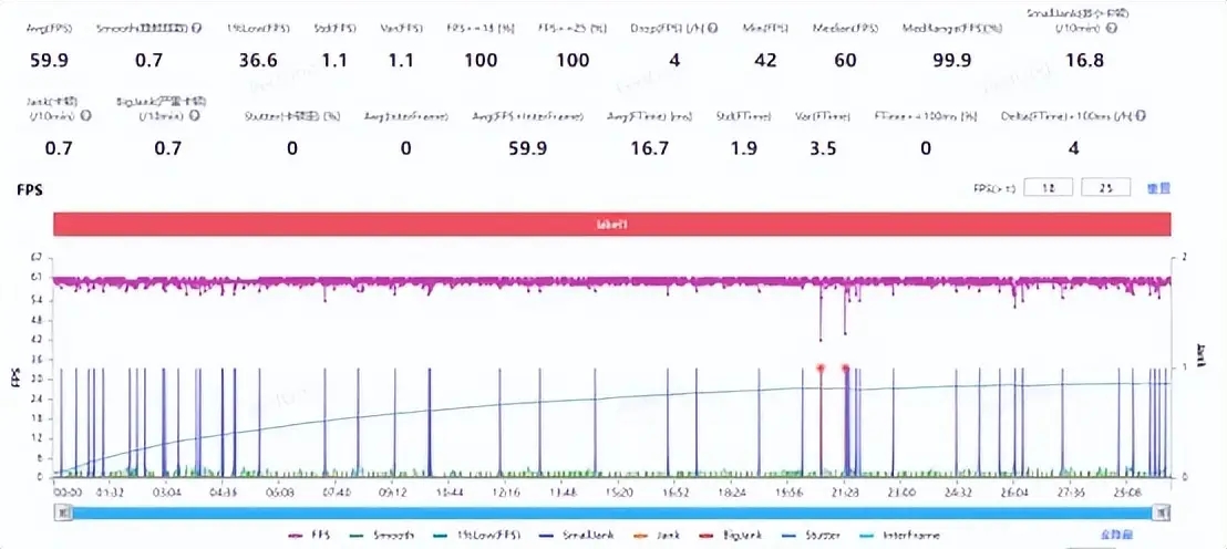 玩主流的大型手游都可以流程跑,我测了《原神》这种吃性能的游戏,开最高画质跑须弥城15分钟,平均帧率很稳,可以稳定在59.9fps,几乎是满帧的表现。现在讲真的,手机芯片的性能都很强了,旗舰芯片和准旗舰芯片在主流手游的差距没那么大了,因为现在的游戏的性能需求远远没达到顶级旗舰芯片的设计标准。