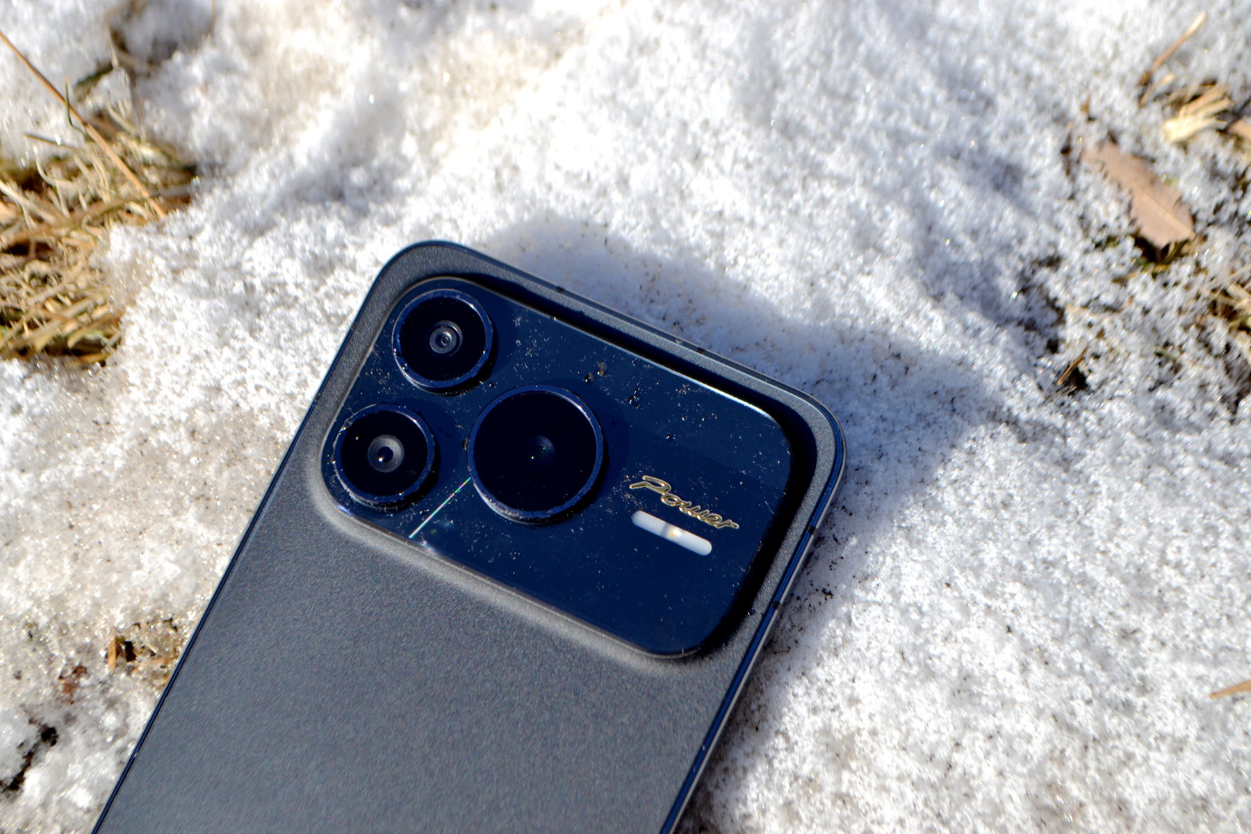 价格虽然便宜了这么多,但是做工一点不含糊,背部是冷雕工艺后盖,摸着手感细腻,光照下还能看到好看的纹理,搭配金属中框,质感比同价位那些塑料机身的机型强太多。镜头模组是横向大Deco设计,还印着“Power”的标识,辨识度拉满,今年让iPhone带的确实都很横向模组了,也算是手机行业的一种流行风向。
