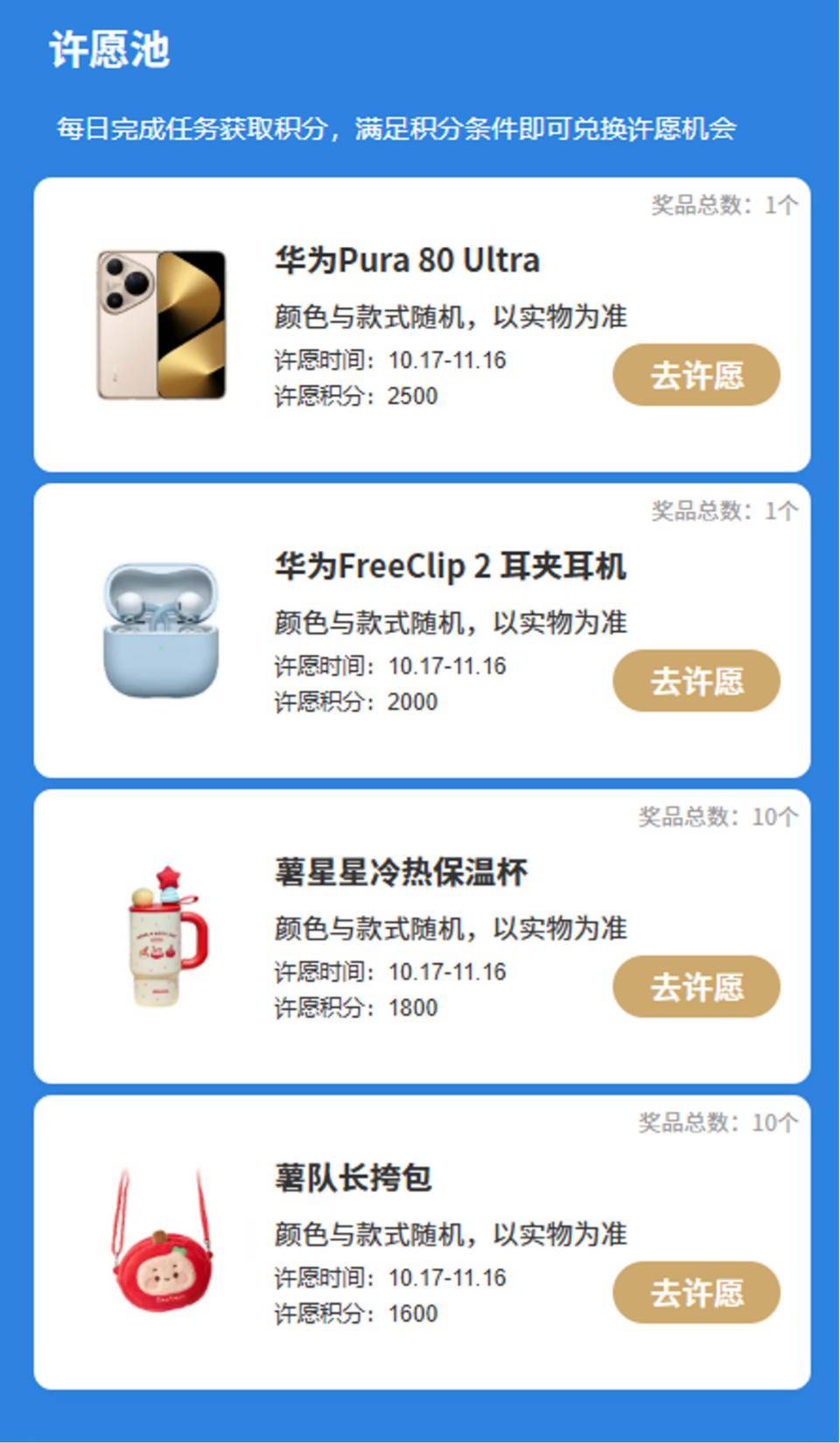 打开小红书搜索#花式玩转负一屏,晒出你的负一屏布局截图,配上创作思路与推荐理由,带上话题#花式玩转负一屏 与#华为负一屏 发布笔记,即可随机参与百万流量瓜分,还可以向官方提出功能建议,说不定下次更新你想要的功能就会实现!完成每日任务积累积分,还能在“许愿池”兑换抽奖机会,华为Pura 80 Ultra、FreeClip 2耳夹耳机、小红书定制周边等惊喜好礼等你来赢!
