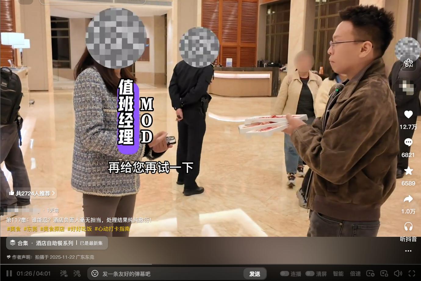 他叫来值班经理询问,经理却不愿意出镜,双方越说越僵,经理居然扭头就走,把博主和小助理晾在了原地。