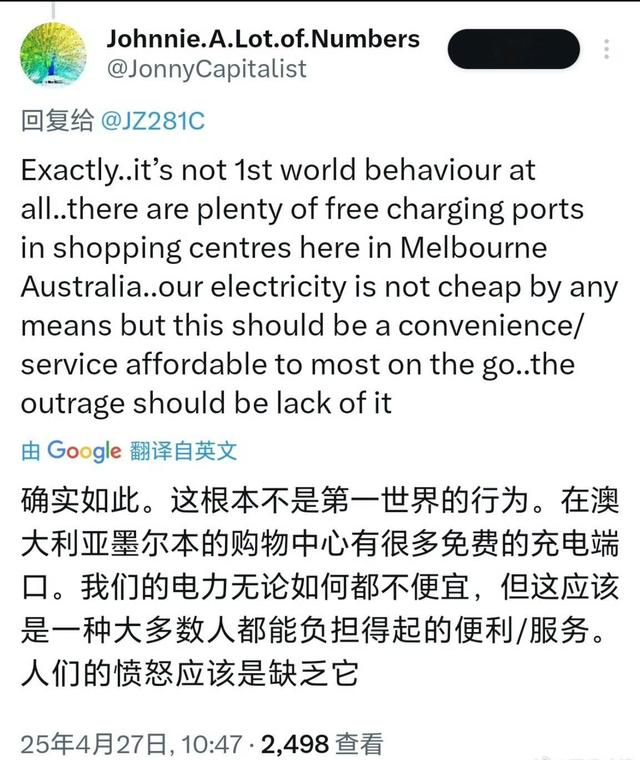 这位澳大利亚的网友就说得很对,日本还是反思一下为什么外国游客在日本这么不便利,日本为什么这么缺乏充电的场所吧!