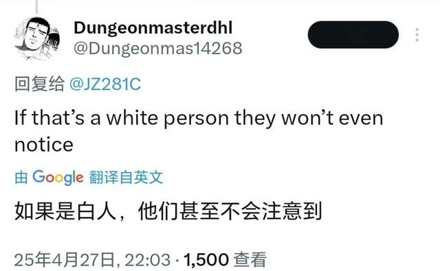 一位外国网友一语中的,说出了这一事件的关键:“如果是白人,他们甚至不会注意到!”