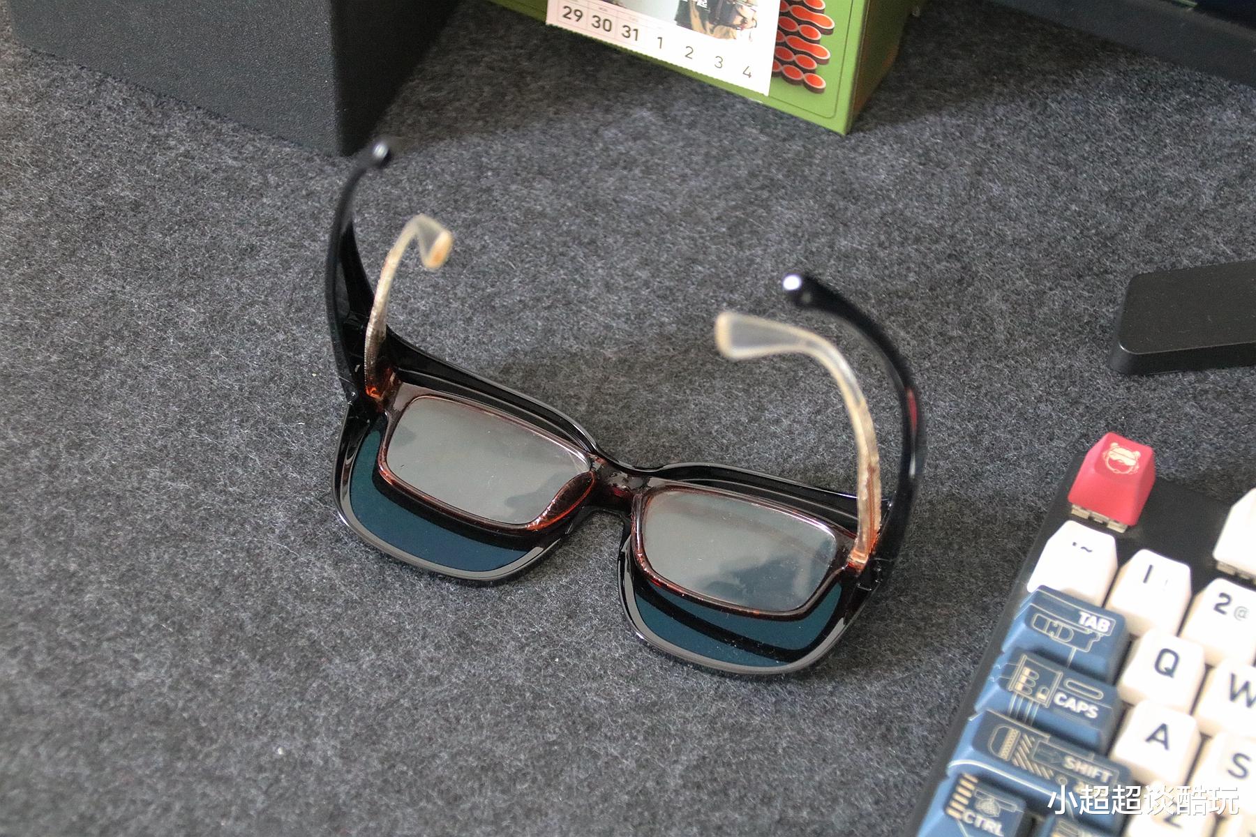 而且它的大框设计特别巧妙,能把近视镜完全包裹住,从侧面看根本看不出戴了两副眼镜,不会显得臃肿笨重,反而能修饰脸型,显脸小,素颜戴也不突兀,日常通勤、约会拍照都很合适。