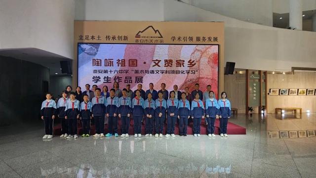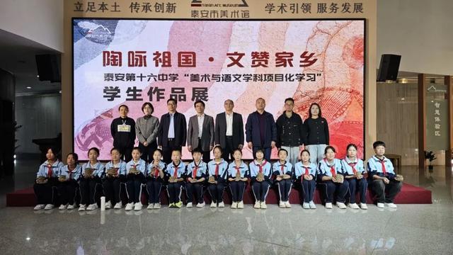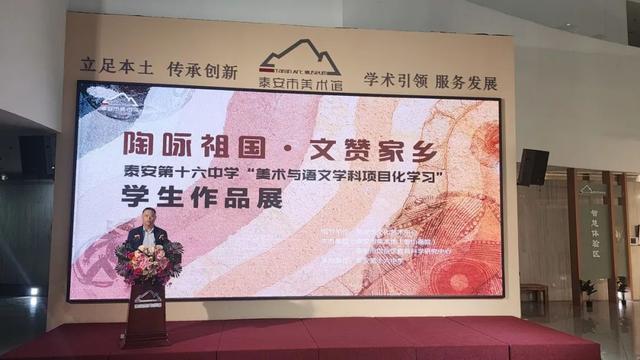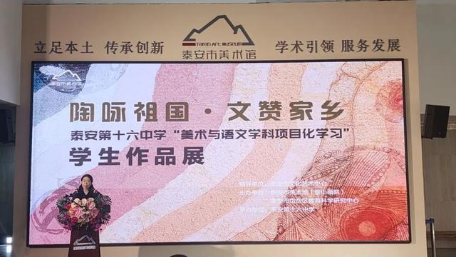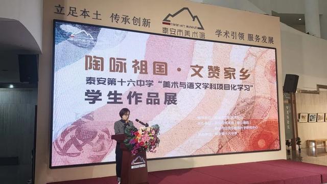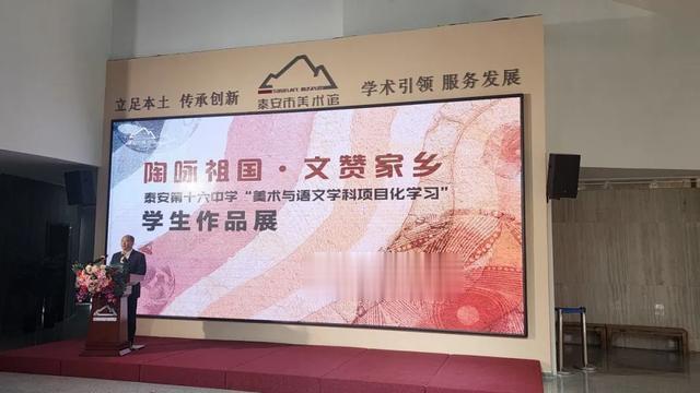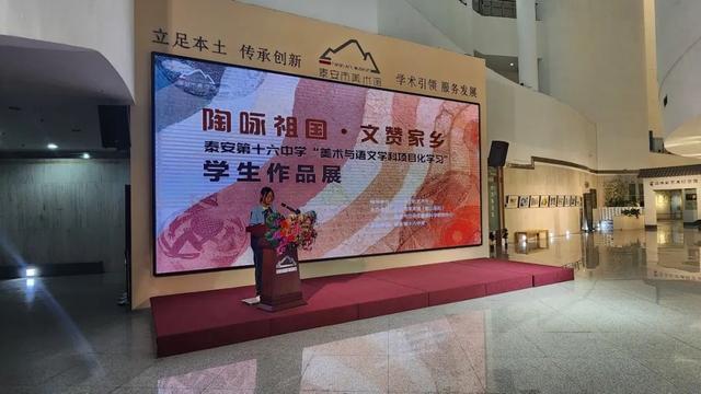 为培养学生审美情趣和艺术素养,助力泰安第十六中学学子走向更高的展示平台,在美育和语文素养领域发挥“家校社”共育力量,10月12日上午,“陶咏祖国·文赞家乡”--泰安第十六中学“美术与语文学科项目化学习”作品展示活动在泰安市美术馆开幕。
