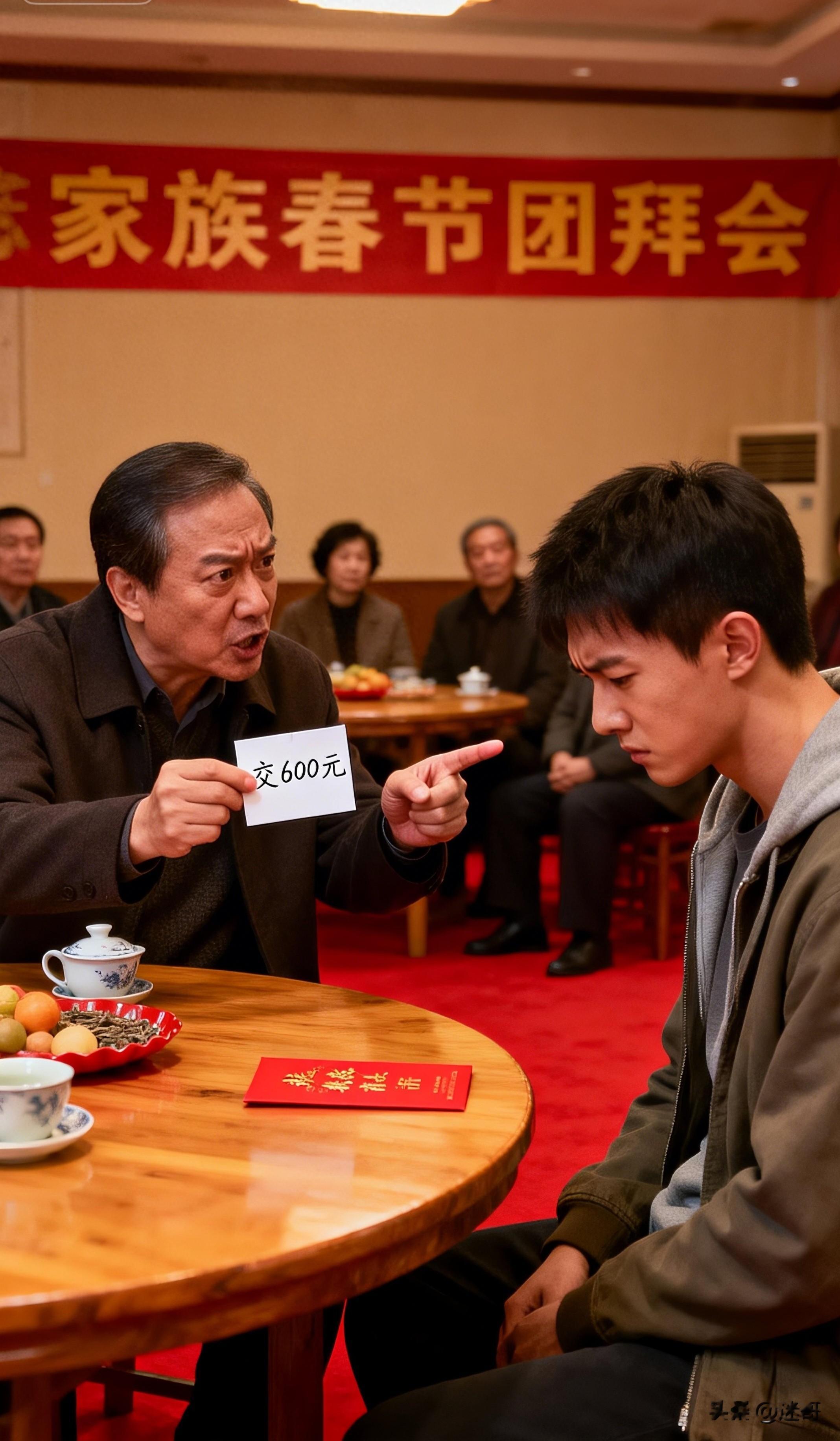 离春节还有一周,家族群里的四伯(族里理事)发出一条长通知:“为增进家族情谊,展现王氏家族团结兴旺气象,经家族理事会商议,今年年初二上午,在祠堂举行‘王氏家族新春团拜会’。届时将向族中七十岁以上长者、以及去年添丁、升学的家庭统一发放慰问品和奖励。为体现家族共同关怀,所需费用由各户分担,每户600元。请于腊月二十八前,转账至指定账户。”
