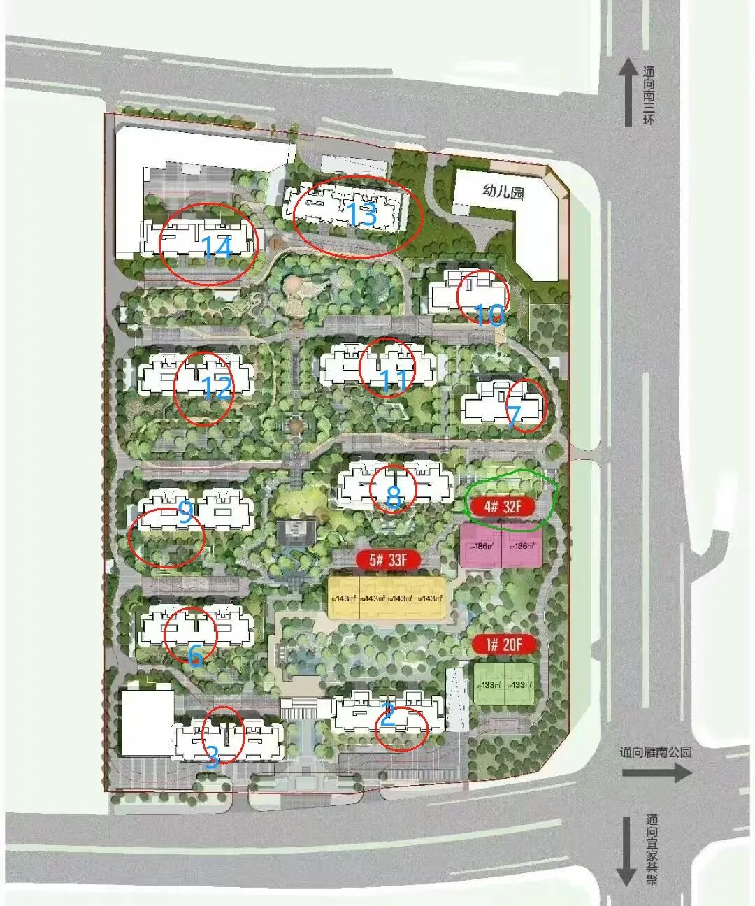 - 生态资源优越 :项目位于1700亩雁南公园首排,东向视野开阔,近700米内没有遮挡,能将公园景观尽收眼底,为业主提供了优质的休闲空间。