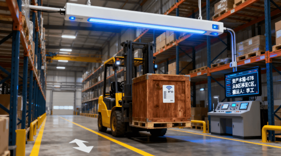 在仓库货物进出管理中,读写器能快速识别数米外叉车上的货物或整托盘的资产,实现高效的入库、出库、盘点操作。