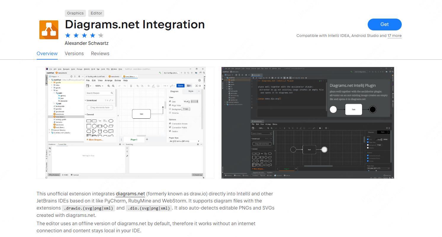 逻辑和 VS Code 一样,在 JetBrains 插件市场搜一下 Diagramsnet Integration,装好后,双击 drawio 文件就能直接在 IDE 那个灰黑色的界面里编辑了。不用切浏览器,不用担心断网,非常适合重度依赖 IDE 的开发者。