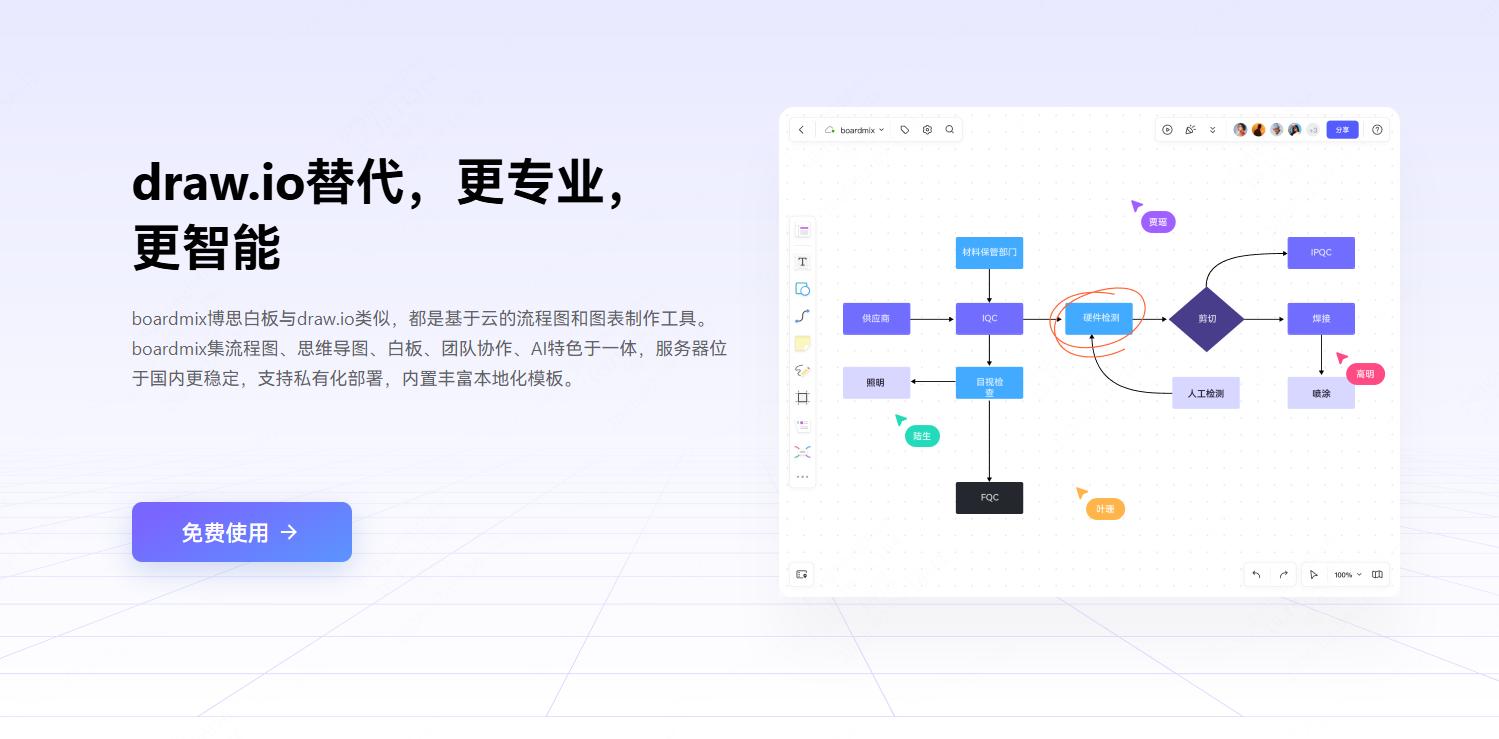 在浏览器打开 boardmix 首页,点击左侧“免费使用”,进入 boardmix 工作台。