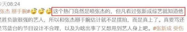 张新成粉丝吐槽张杰没有分寸感,掰手腕居然能把对手弄骨折,实在是好胜心太强。但张杰粉丝却表示张新成才是胜负欲很强的一位,所以在和张杰掰手腕时必定太用力才骨折的。