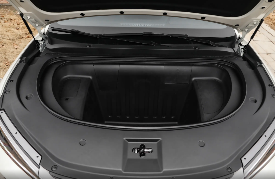 轻轻叩击大灯中间的银色饰板两下,前备箱就会自动开启,前备箱容积表现还是很给力的