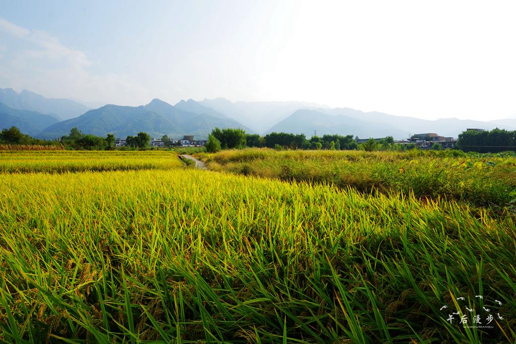 西安秦岭山下的美丽田园 山清水秀稻花飘香