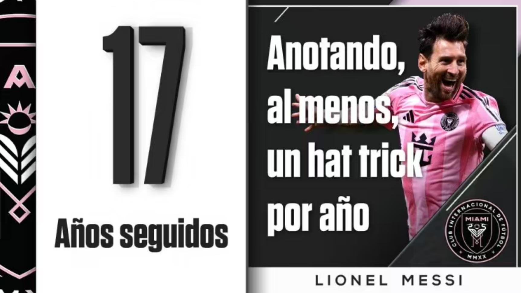 梅西还创造了一项里程碑纪录——他在美职联出战53场比赛就攻入50球,超越伊布(54场),成为美职联历史上最快达成50球的球员。此外,梅西已经连续17年在比赛中完成帽子戏法,这一数字展现了他长达近二十年的巅峰状态。