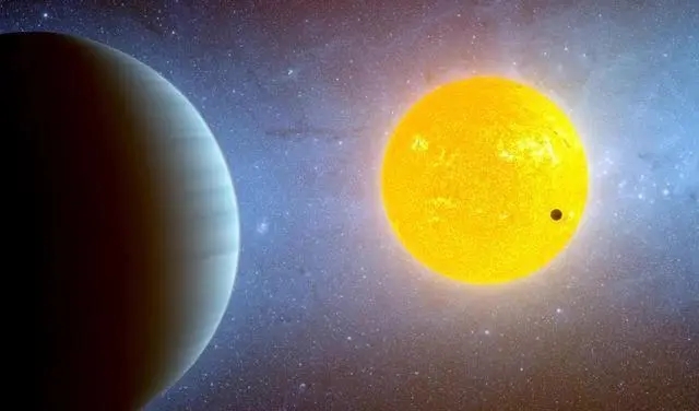 KELT-9 的质量、大小和温度大约是我们太阳的两倍,并且在 9900°C 时发出嘶嘶声,是已知拥有一颗凌日系外行星的最热恒星。高迪说,如果肉眼观察者可以从地球上看到 KELT-9,这颗恒星会因为它的高温而看起来是明亮的蓝色,而不是我们凉爽得多的太阳的黄橙色。