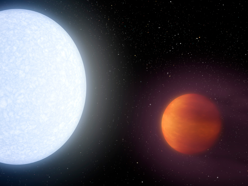 高迪说,这颗新发现的系外行星潮汐锁定在它的主星上,这意味着一侧永远面临着一股辐射热。KELT-9b“白天”的 4300°C 温度仅比太阳表面低 1000°C 左右。