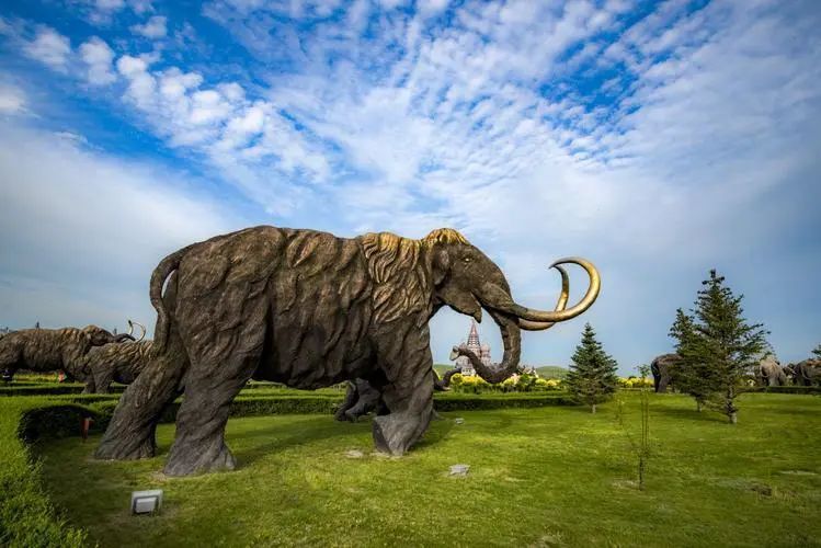当然,猛犸公园最让人印象深刻的还是那些栩栩如生的猛犸象雕塑。这些雕塑形态各异,有的悠闲地躺在草地上,有的在湖边饮水,还有的在森林中奔跑。它们的皮肤纹理和眼神都刻画得非常逼真,仿佛真的回到了那个神秘的侏罗纪时代。在这里,你可以与这些巨大的猛犸象合影留念,感受它们的威猛和力量。